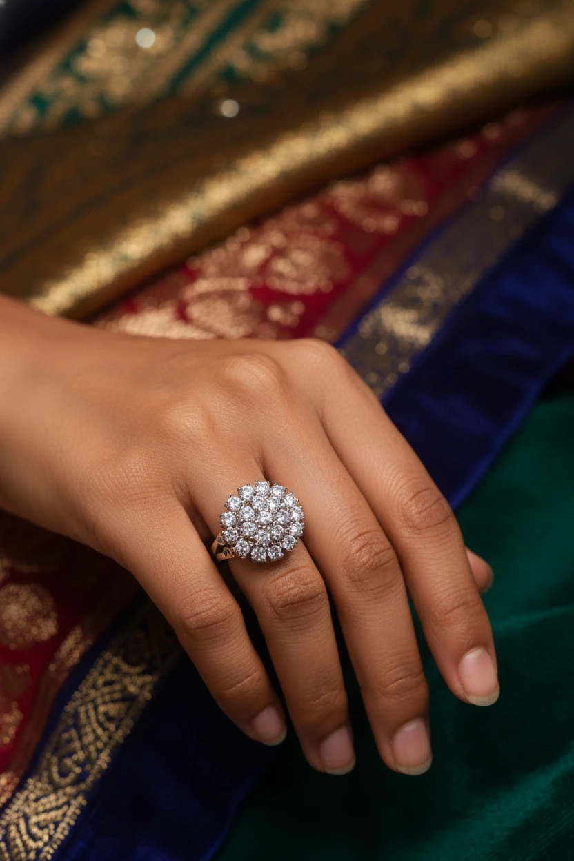 Perfect for party wear and special occasions, this ring pairs effortlessly with ethnic outfits as well as Indo-western styles. A must-have accessory for those who love bold yet graceful jewellery.