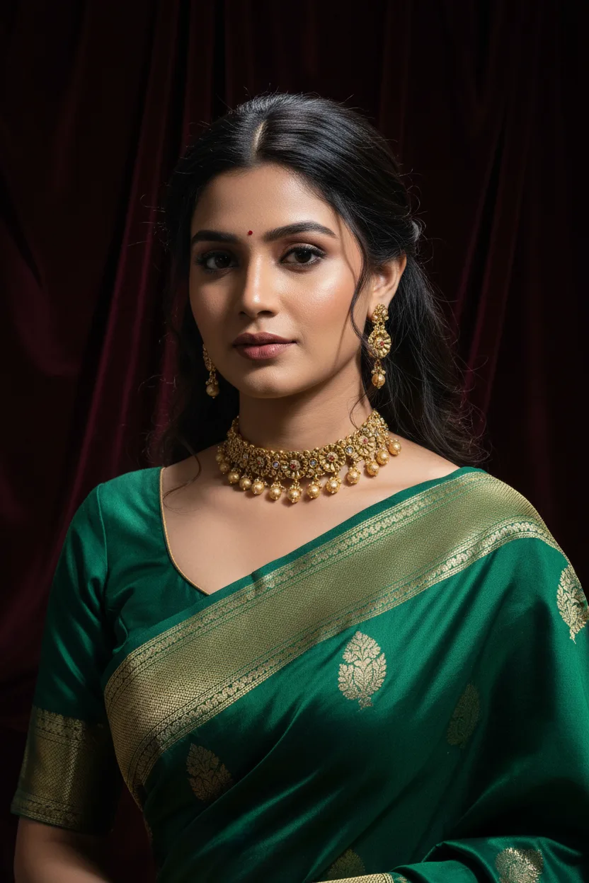 Paired with matching earrings, this jewellery set is ideal for weddings, festive occasions, and traditional celebrations. The structured choker design sits beautifully on the neckline, making it a perfect statement piece for bridal and ethnic ensembles.