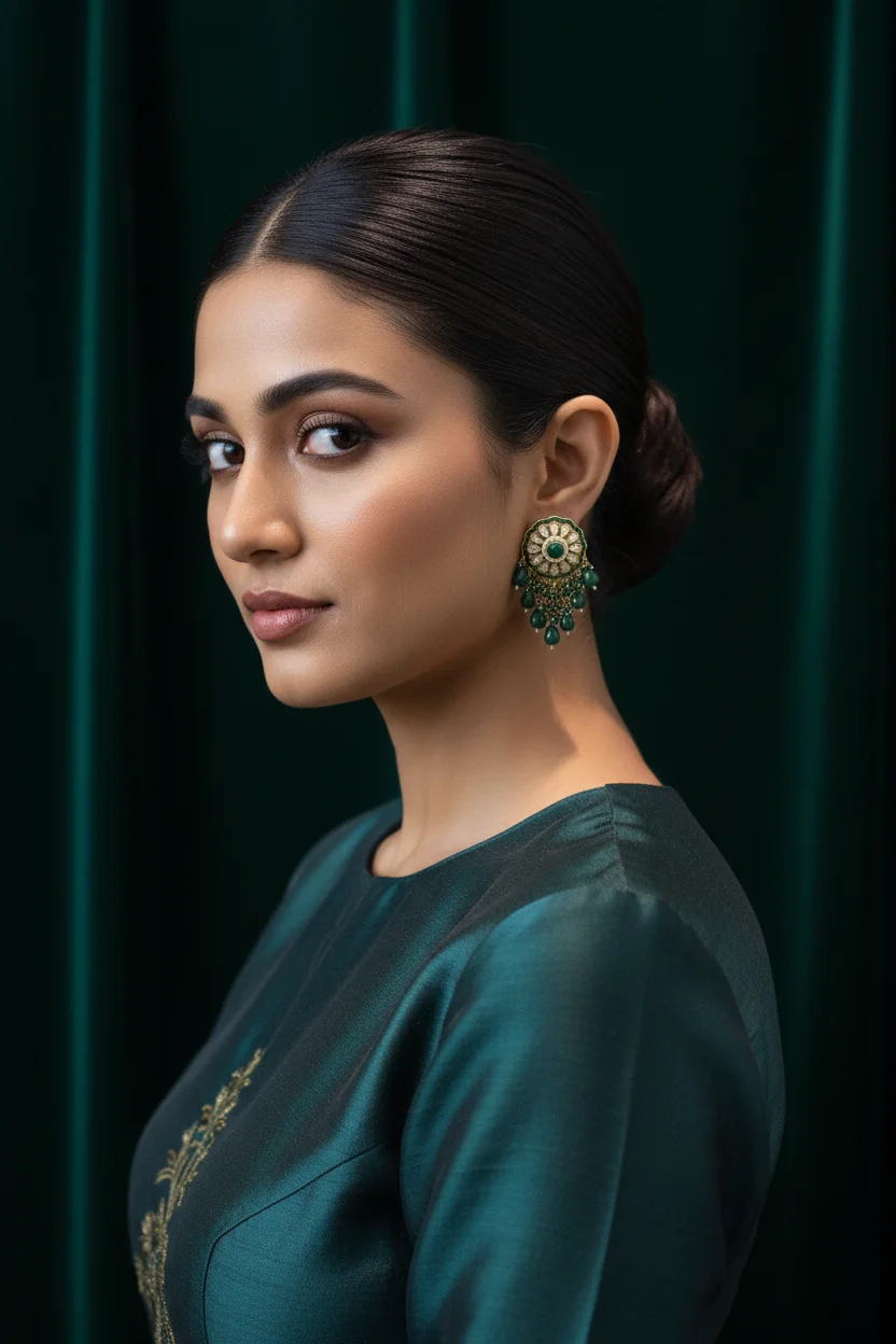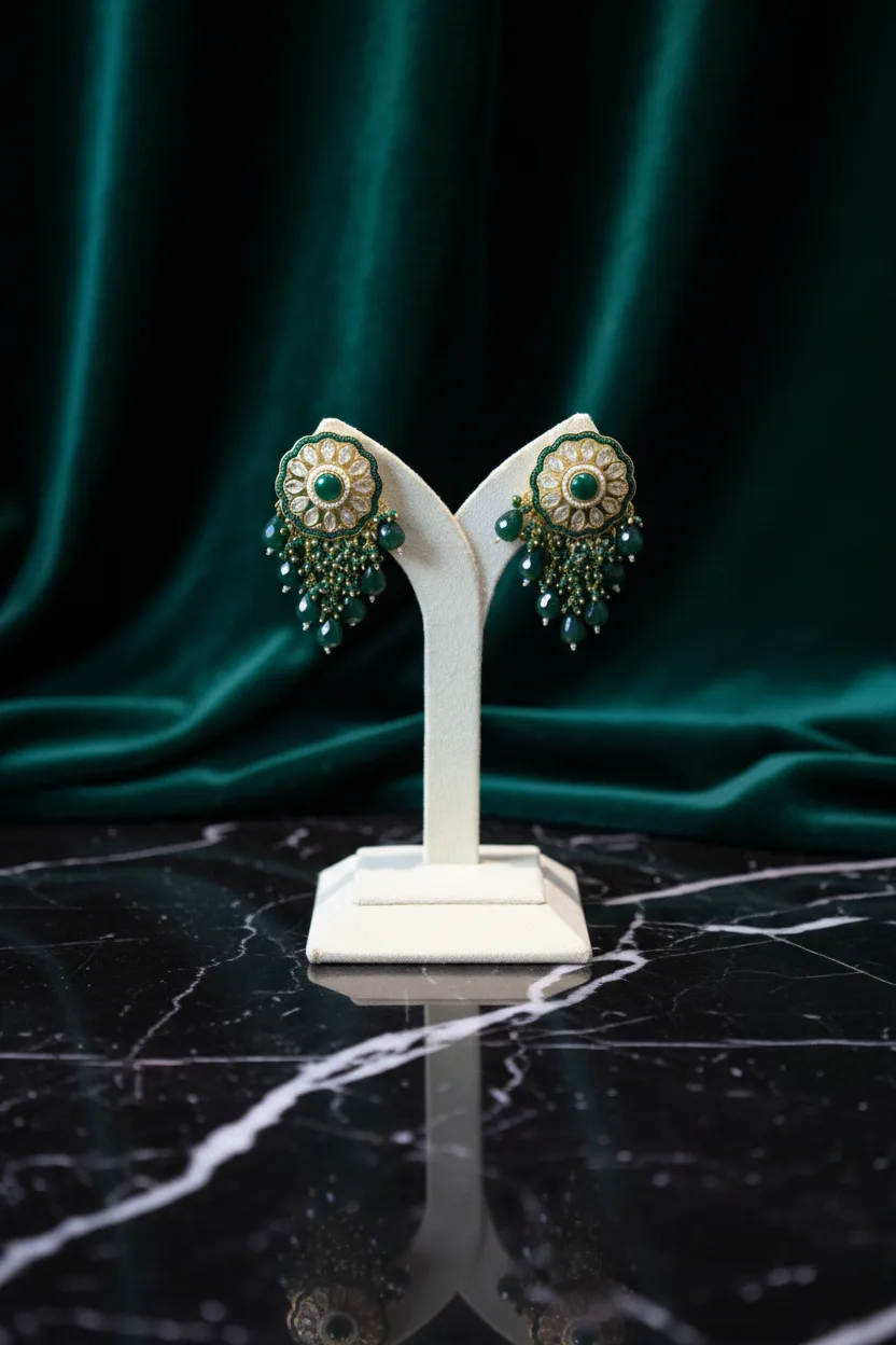 Delicate cascading green bead drops add movement and richness, making these earrings ideal for weddings, festive occasions, and ethnic wear. Lightweight yet statement-worthy, they pair beautifully with sarees, lehengas, and anarkali outfits.