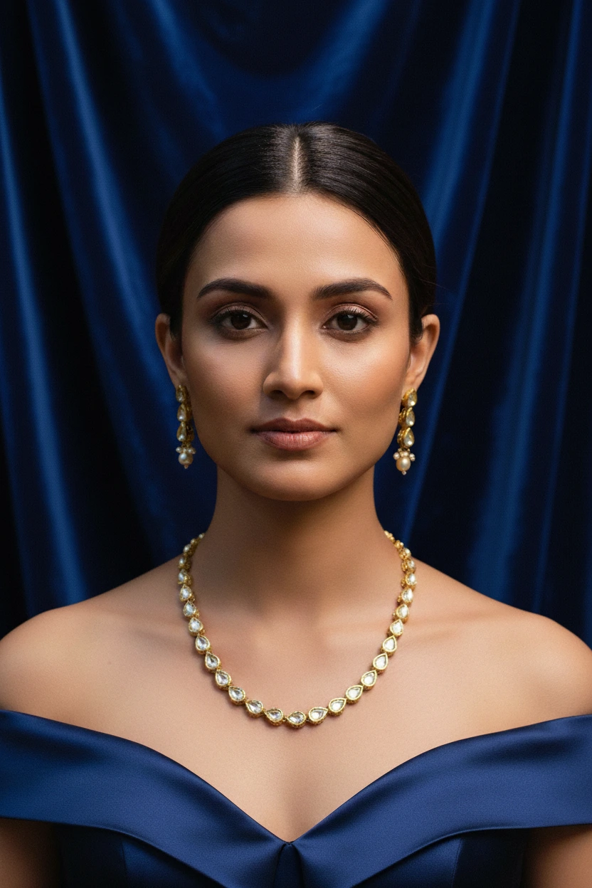 A timeless kundan teardrop necklace set designed to elevate festive and party looks effortlessly.