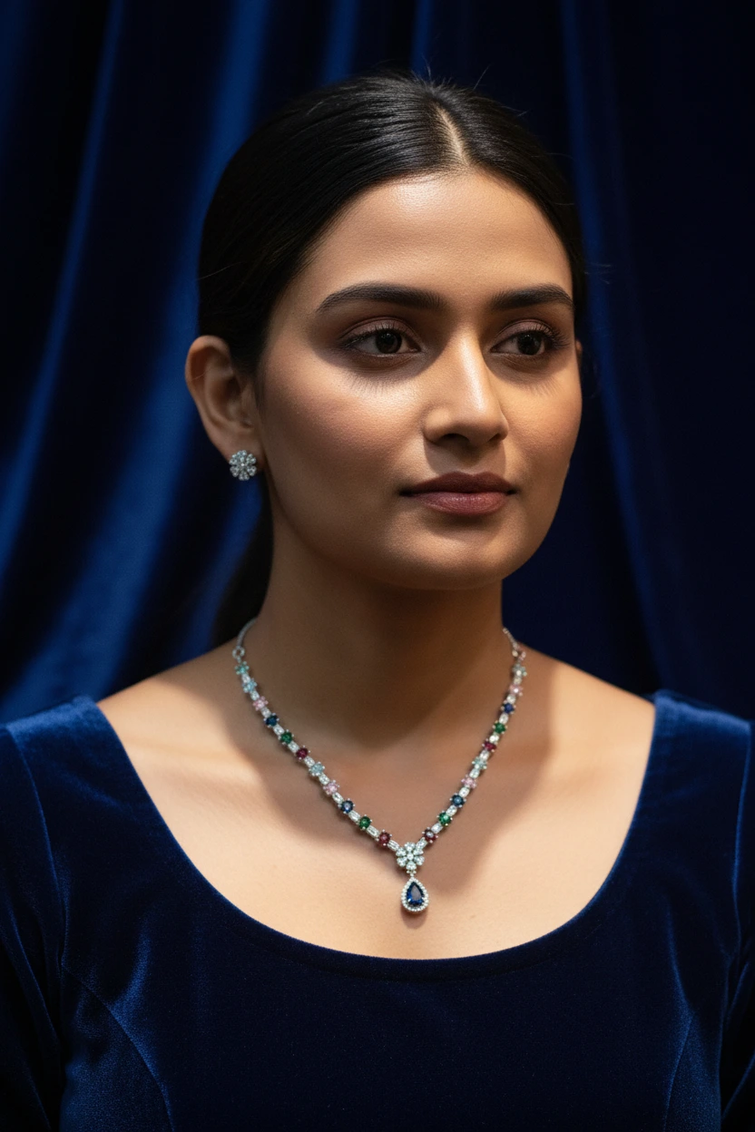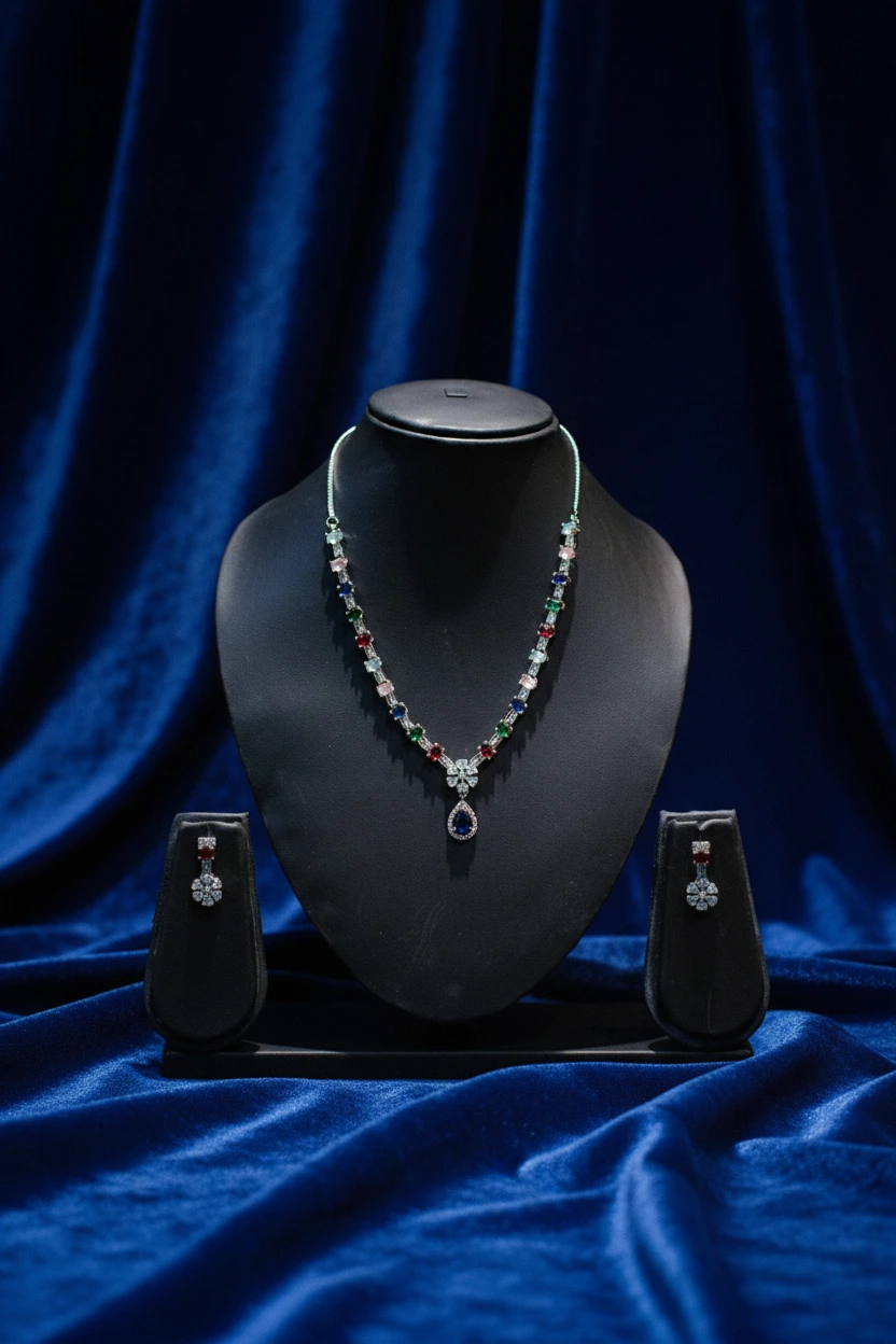 Bring charm and brilliance to your jewellery collection with this Silver Tone Multi-Colour Stone Teardrop Necklace Set. Crafted with high-quality artificial metal and adorned with vibrant stones, this beautifully designed set adds richness and elegance to any outfit.