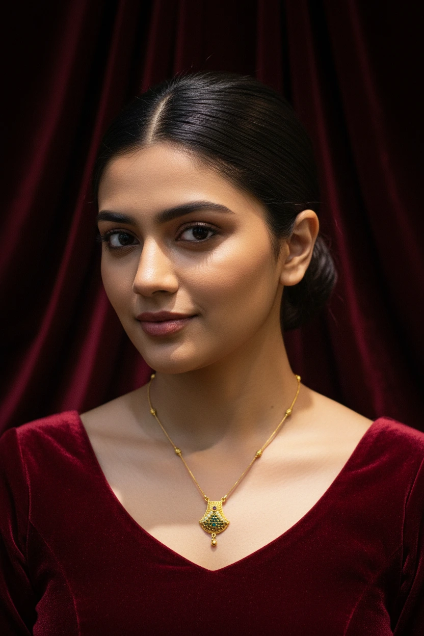 This gold tone pendant chain is crafted for women who prefer subtle jewellery that blends seamlessly into everyday styling. The sleek chain is enhanced with delicate bead accents and finished with a central ornamental pendant that adds a traditional touch without appearing heavy.